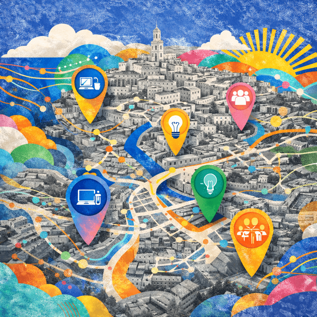 Matera I.A. applica questo principio alla città. Ogni persona, impresa, spazio, laboratorio, scuola o competenza disponibile può diventare un nodo attivo. Più connessioni si attivano, più la città diventa capace di generare lavoro, progetti e innovazione.